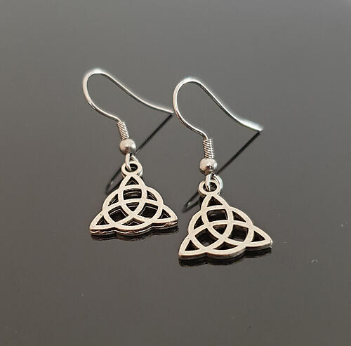 The triquetra is a triangular figure composed of three interlaced arcs. The design can be found in 4th century Persian ceramics, 8th century Anglo-Saxon stonework and used in Asia via Buddhist influence. The triquetra, also known as a "trinity knot", is also used in Celtic knotwork, pagan (as a protective symbol) as well as Christian designs.